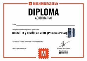 Además, si completas todos los cursos del MEGAPACK IA+3D, tendrás acceso a un Diploma Global, que acredita que te has convertido en un referente en Diseño de Moda 4.0, con conocimientos de Inteligencia Artificial aplicada al Diseño de Moda y de Diseño de Moda en 3D con CLO.